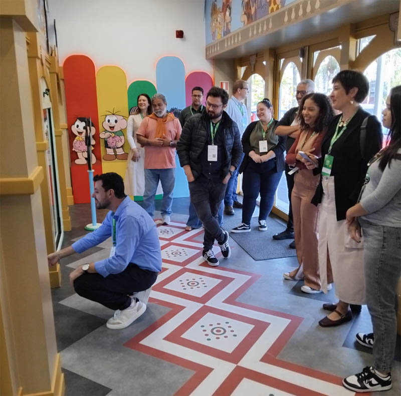 Coube a Cristiane Amaral, ainda, comandar a visita ao espaço educacional da Turma da Mônica no CAS, que ainda contou com a presença das monitoras que interagiram com os jornalistas.